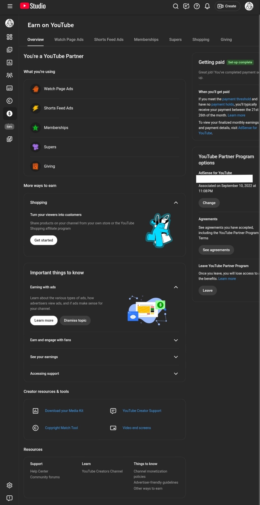 • AdSense connected