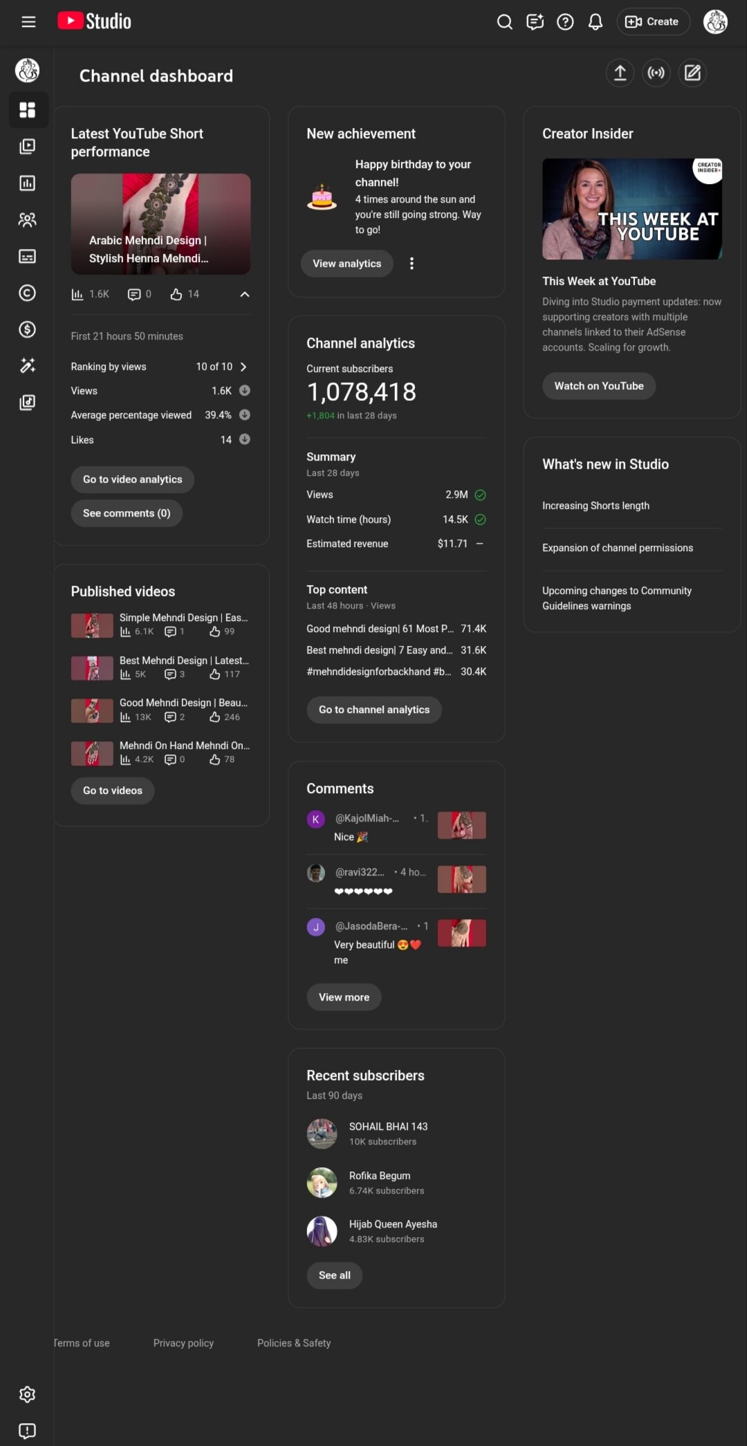 Description:High authority YouTube channel in the Beauty / Mehndi niche with over 1.07 Million subscribers and 302M+ lifetime views.