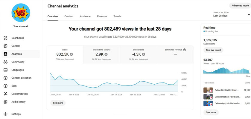 350M+ lifetime views (grown via shorts)