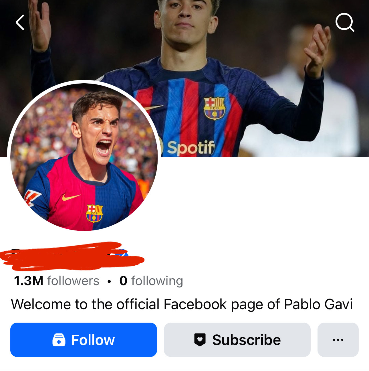 Description: football fcb player page with blue tick very active