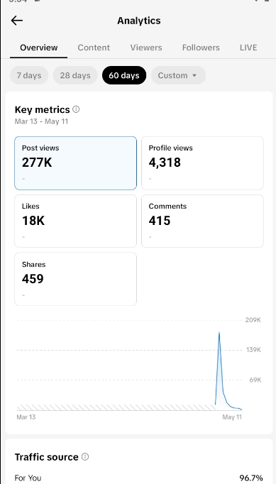 With 277K views and 18K likes, your content is resonating with audiences and driving interaction.