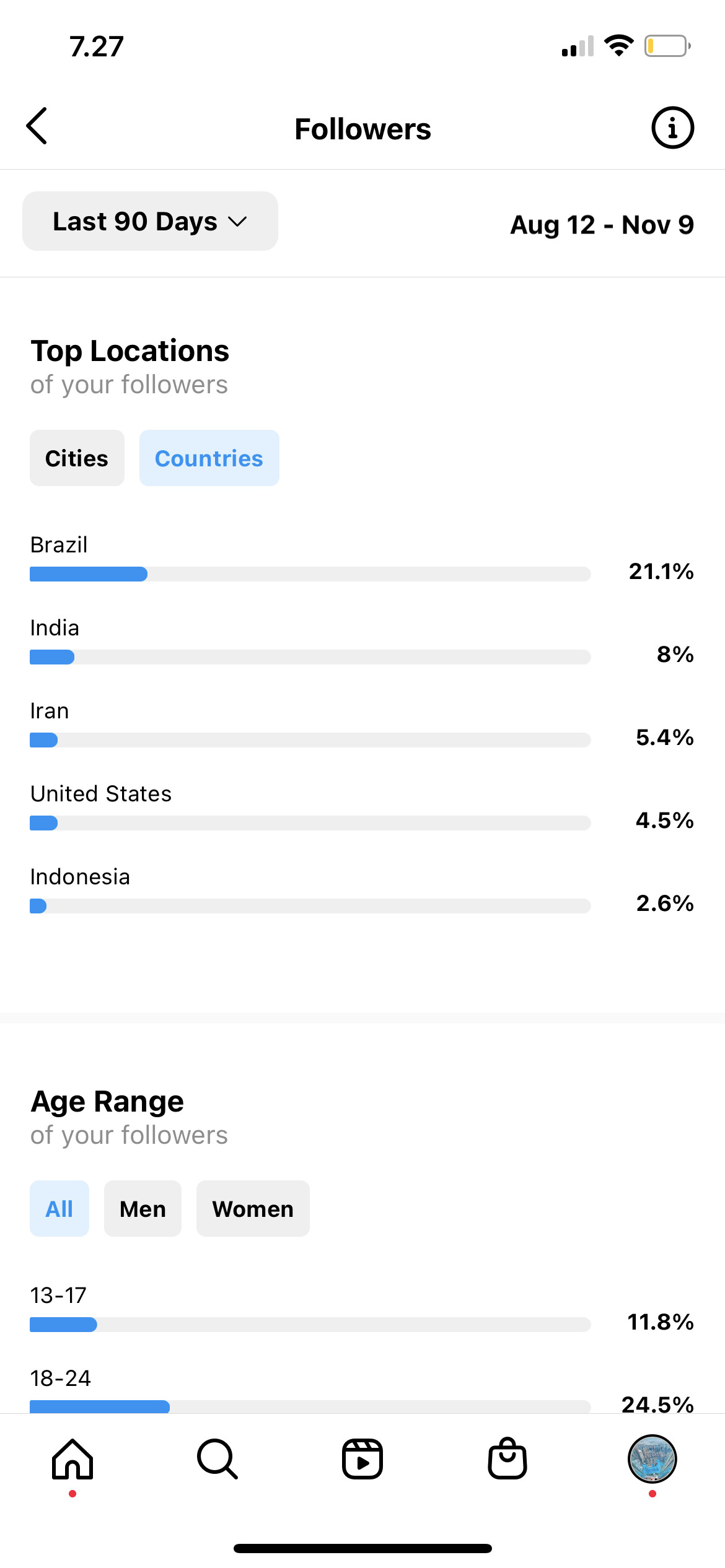 Country of followers (majority): International