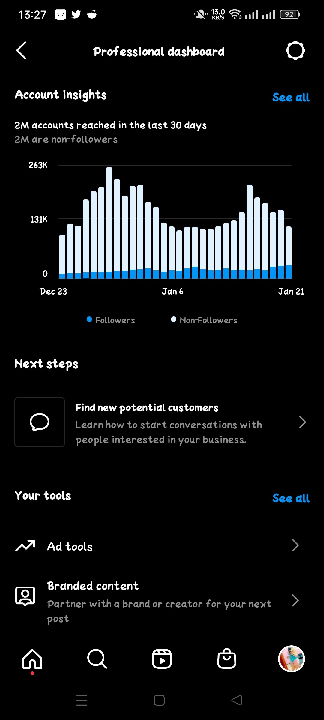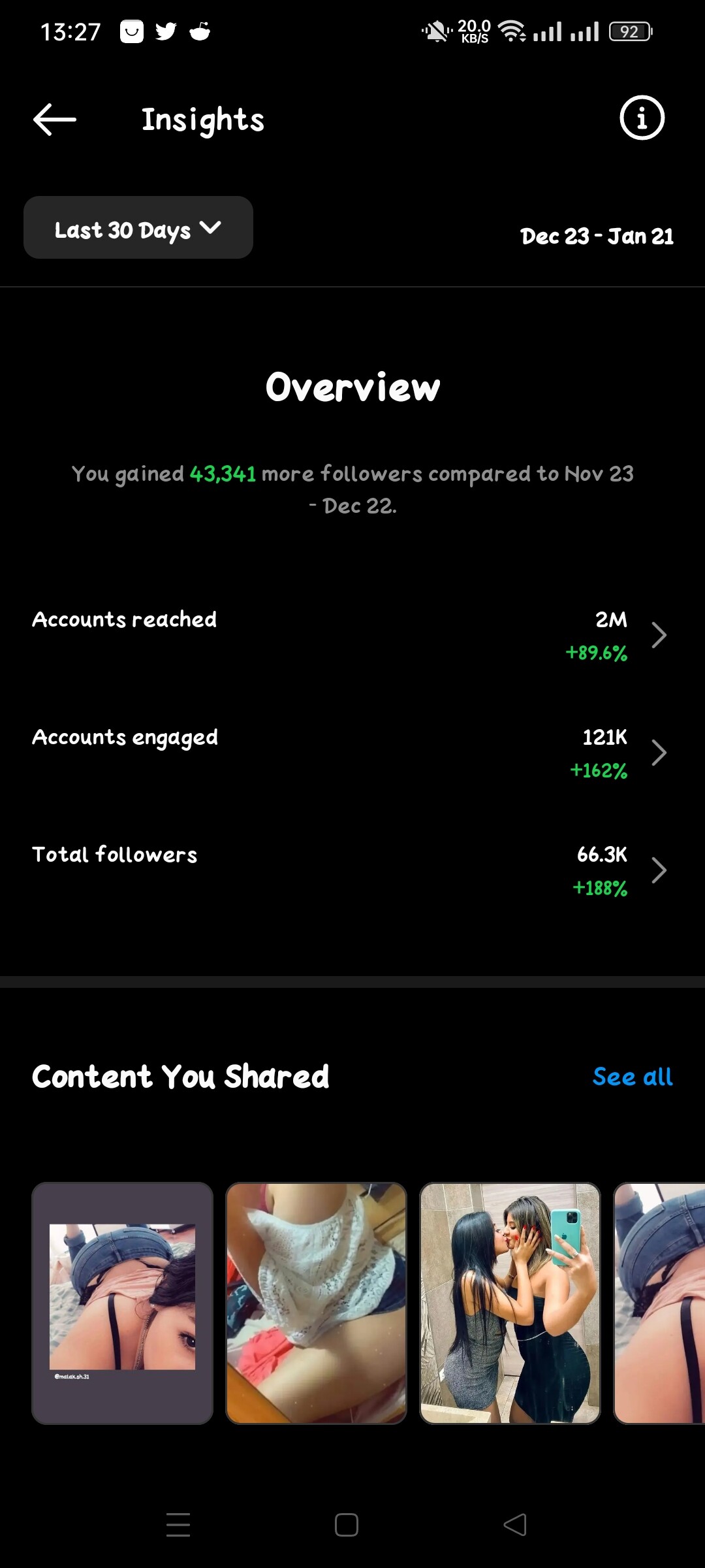 Description: account reach 2m in last 30 days