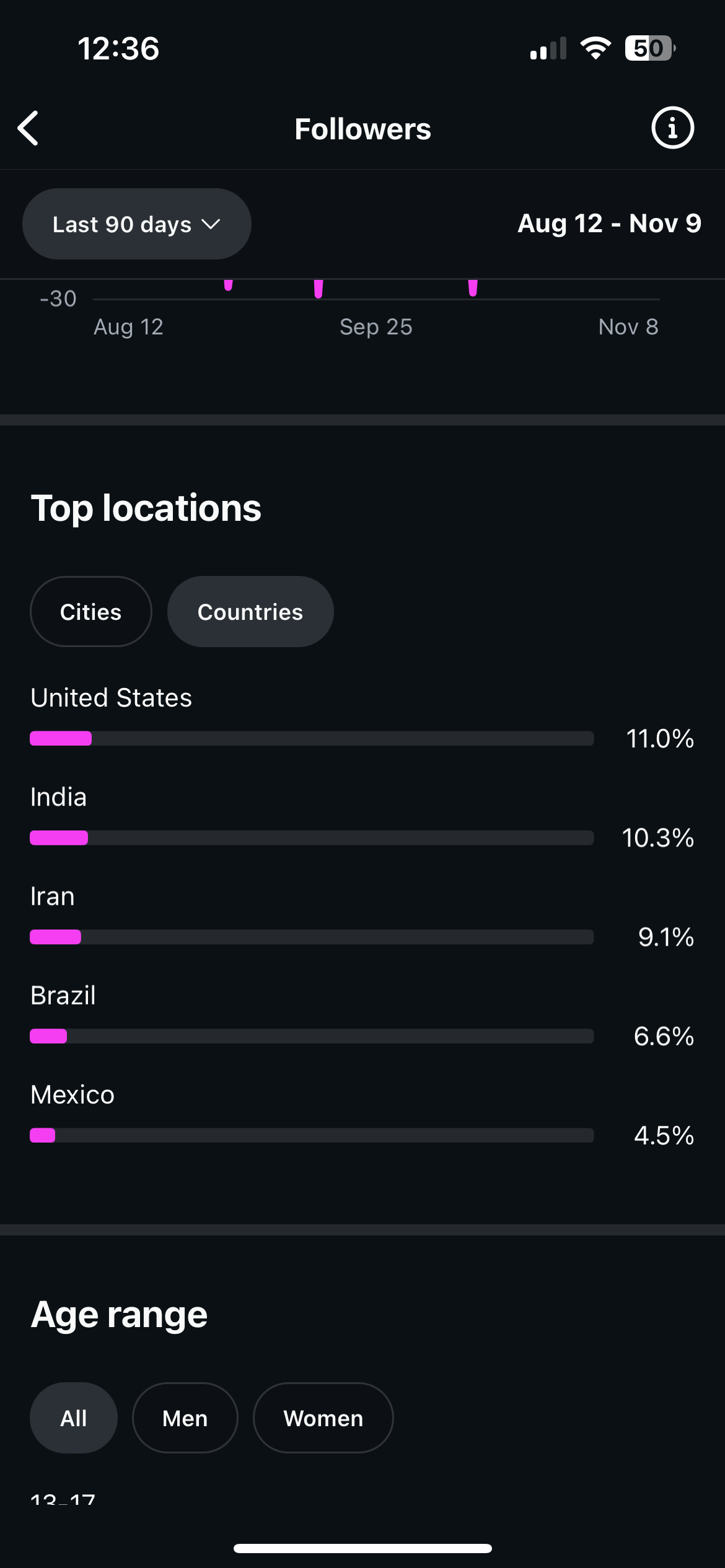 Country of followers (majority): US, India