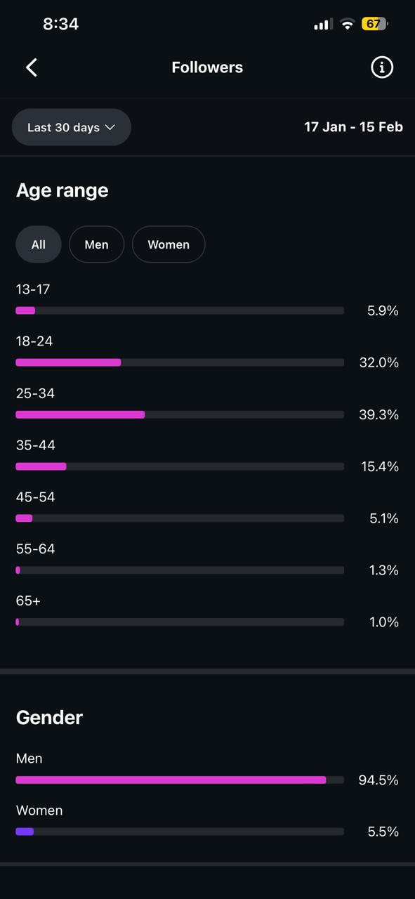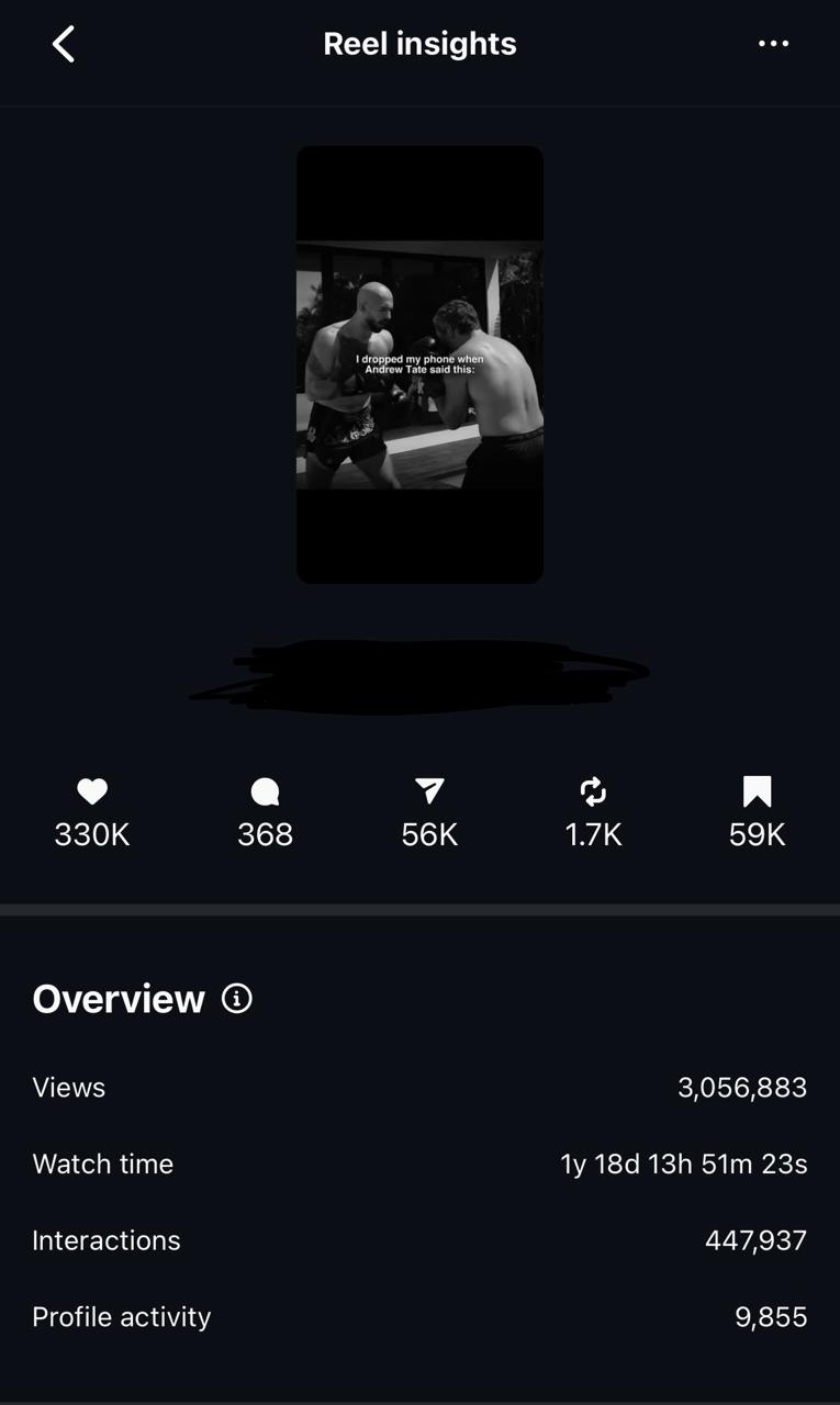 Description: 30% US following , andrewtate themepage, 50million+ views at its peak, currently not that active but 1million views per month