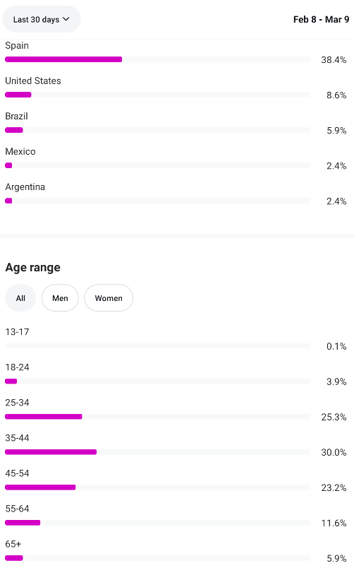 Country of followers (majority): Spain