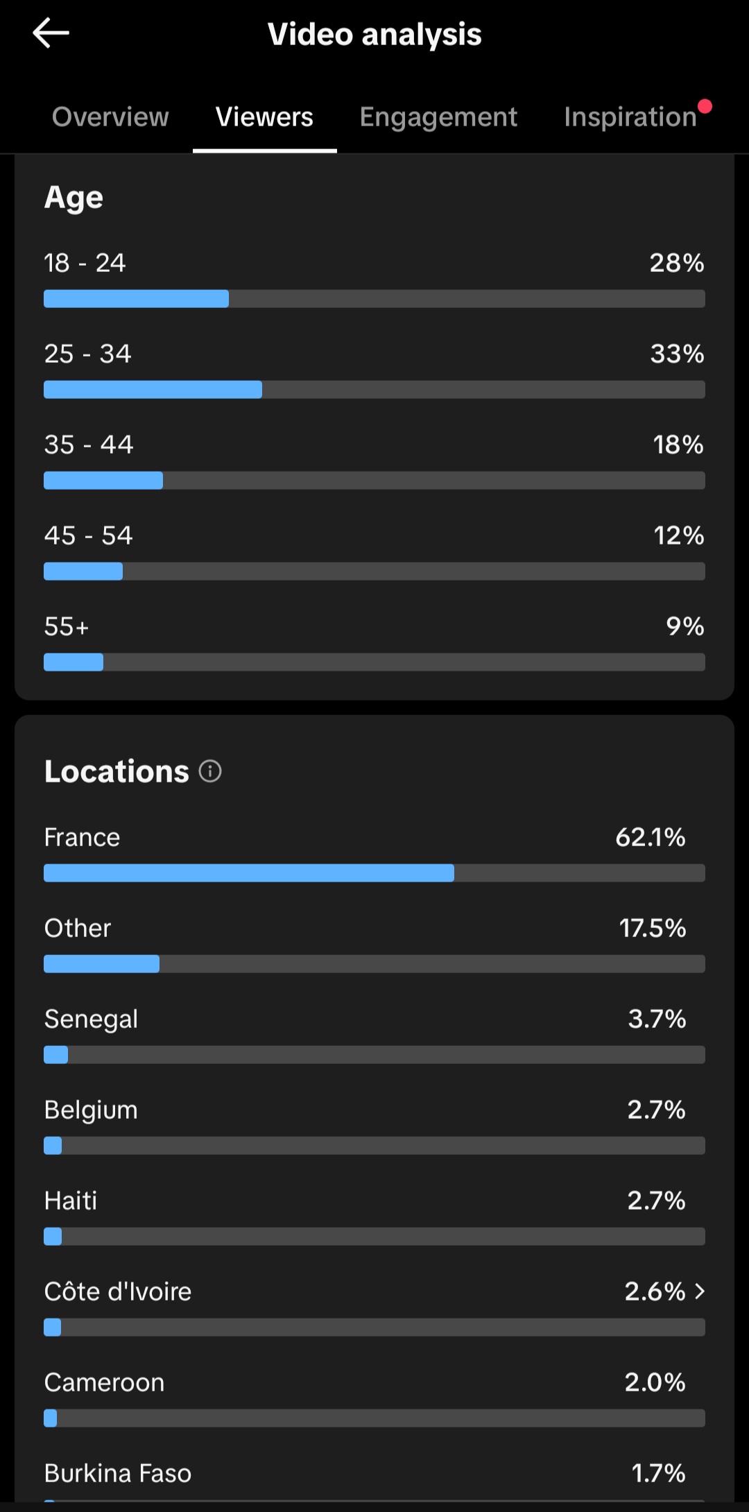 This Tiktok account has astrong , engaged audience mostly from the france accounting for 62% of the total followers . It regularly averages 10 000 to 20,000 views per post with great potential for growth . Perfect for quiz related content creators or anyone looking to enter the quiz niche on Tiktok. The account is eligible for Tiktok’s Creator Rewards program and monetization opportunities.