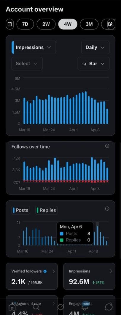 Growth: Gaining thousands of followers weekly with minimal posting (averaging only 5β10 posts per day).