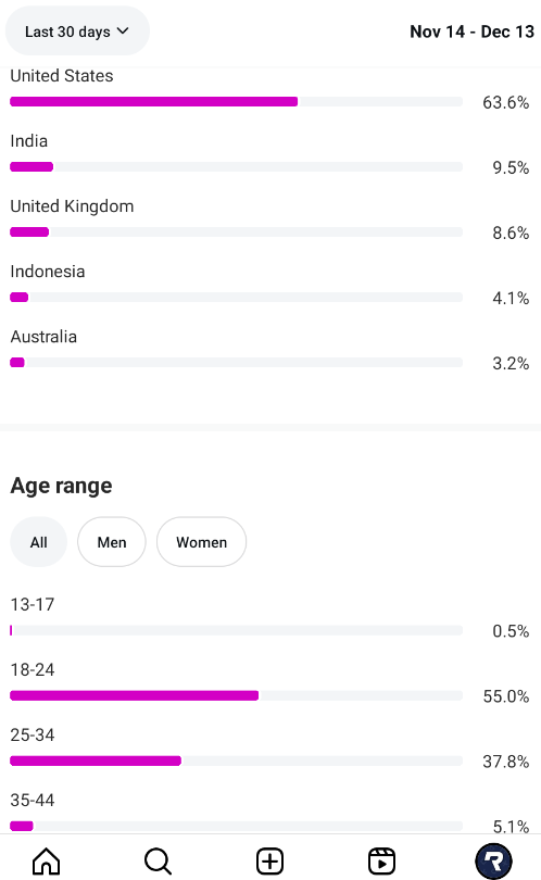 Country of followers (majority): United States