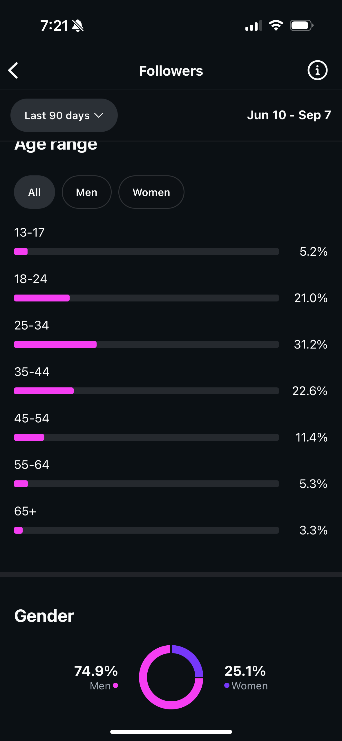 Description: motivational/conspiracy Instagram theme page with 41% US audience all grown organically.