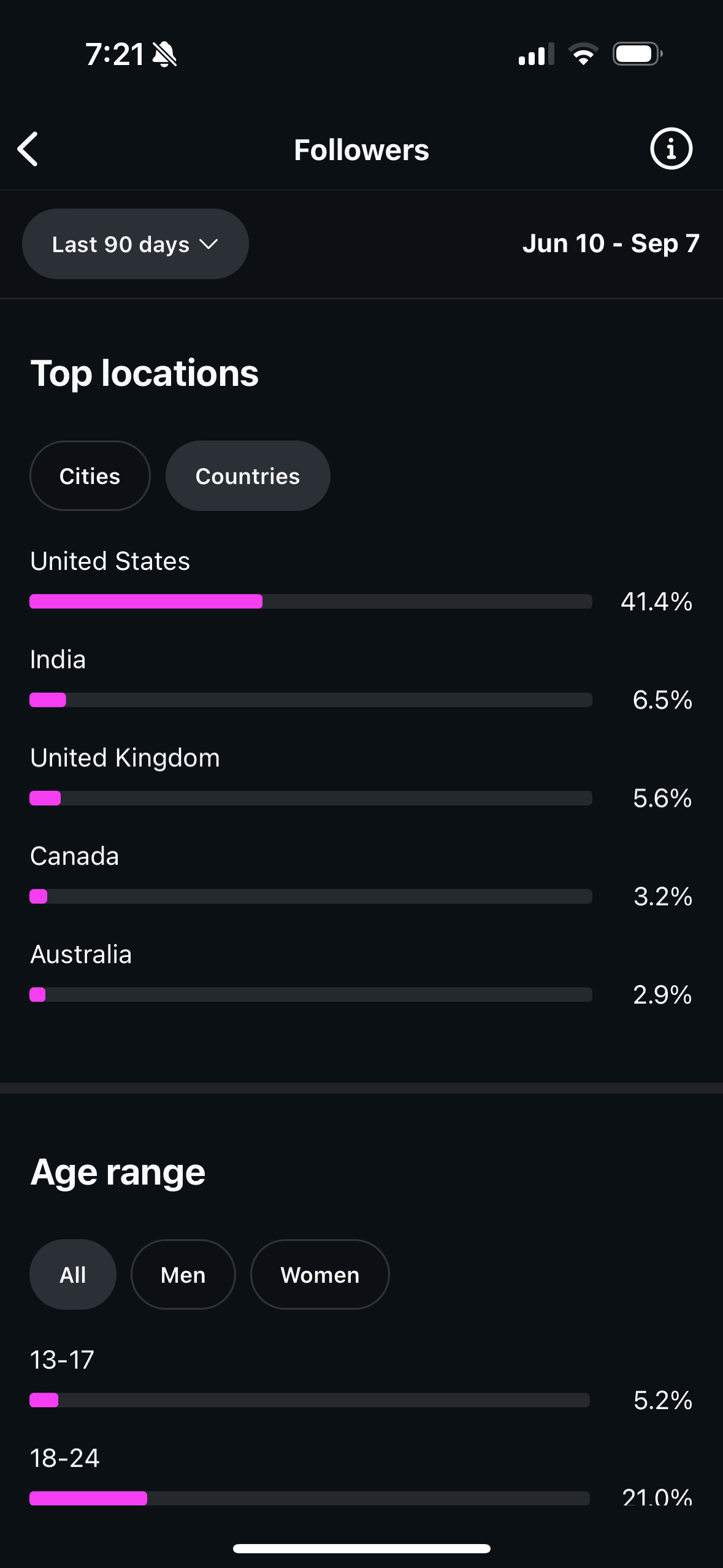 Country of followers (majority): US