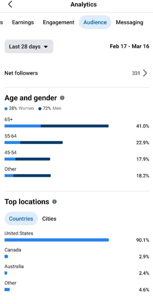 Country of followers (majority): US