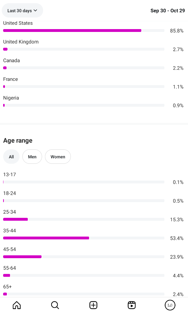 Country of followers (majority): United States