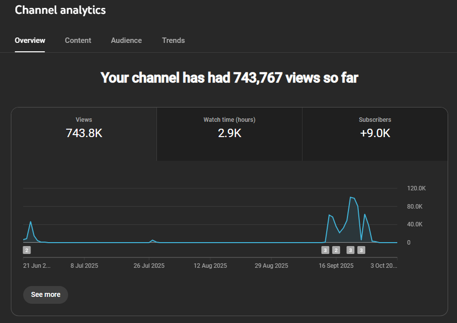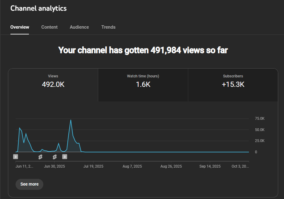 PM me for the channel URL! Screenshots of analytics attached below.