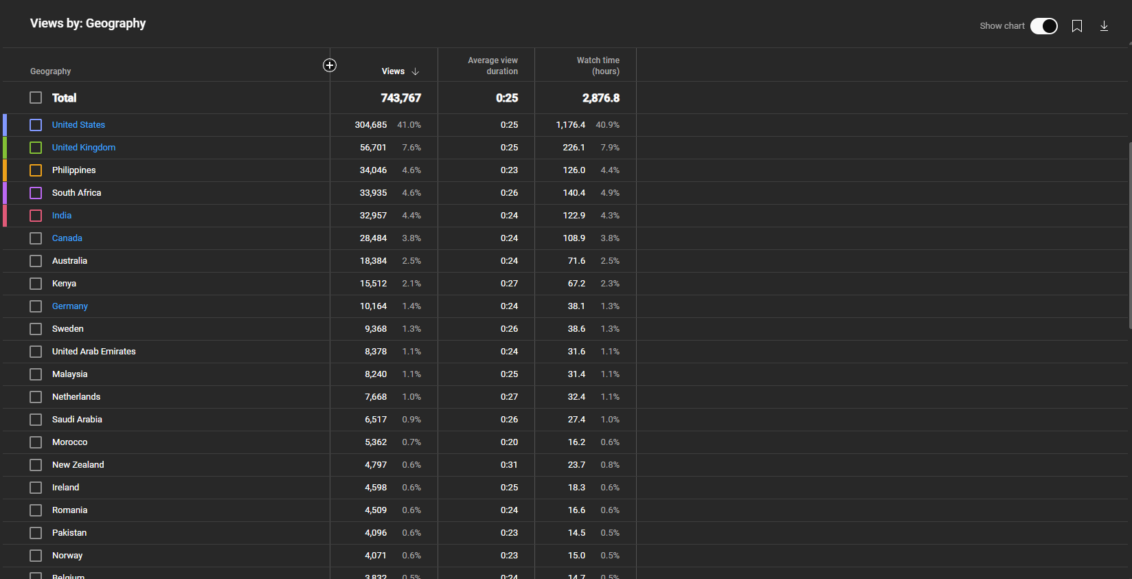 Description: The top view demographics on these channels are USA and the views come from shorts. Channel number 1 (15k) is in the pets niche, channel number 2 (12k) is in the soccer niche, and the third one (9k) is general entertainment/virality. Channel #3 has also been extremely active in growth in the past 30 days.