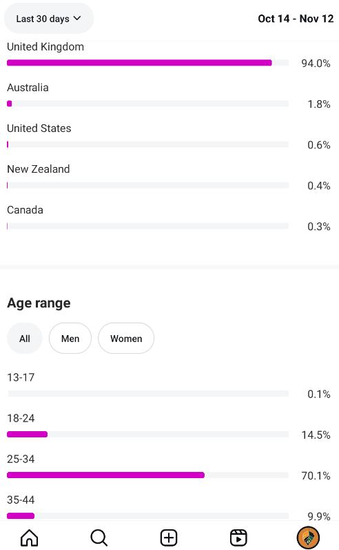 Country of followers (majority): United Kingdom