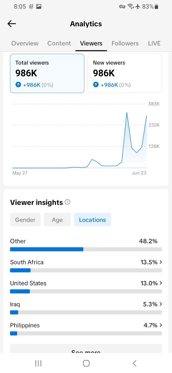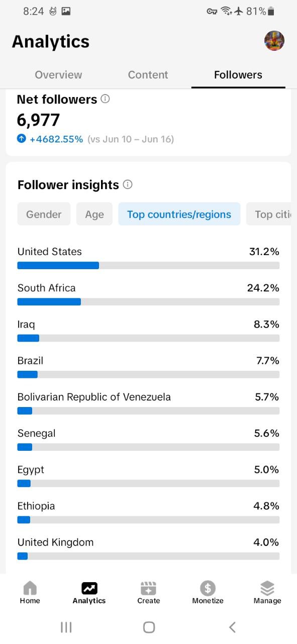 Country of followers (majority): United States South Africa Other