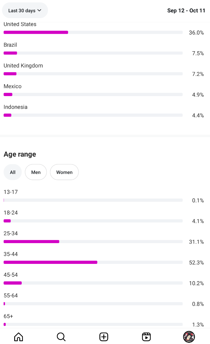 Country of followers (majority): United States