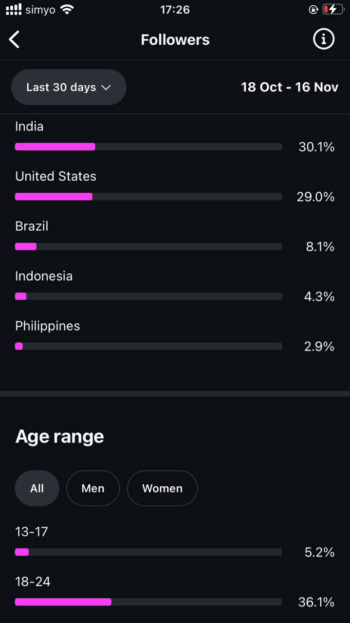Country of followers (majority): International