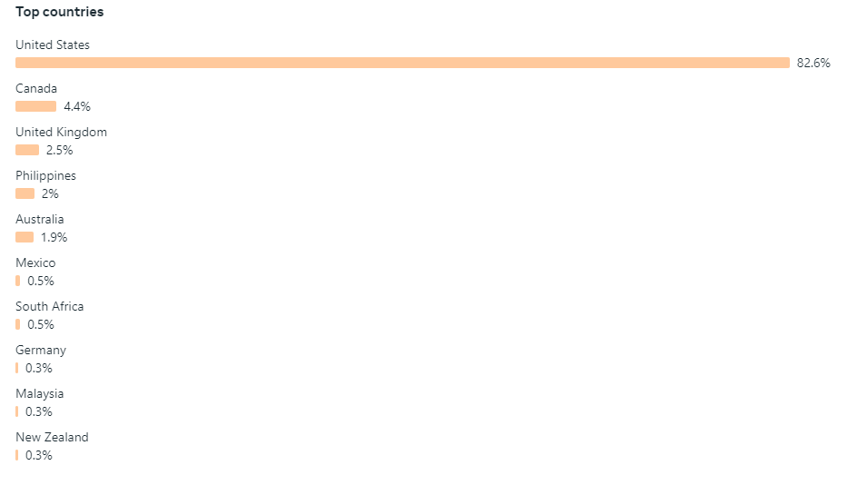 Country of followers (majority): 82% US