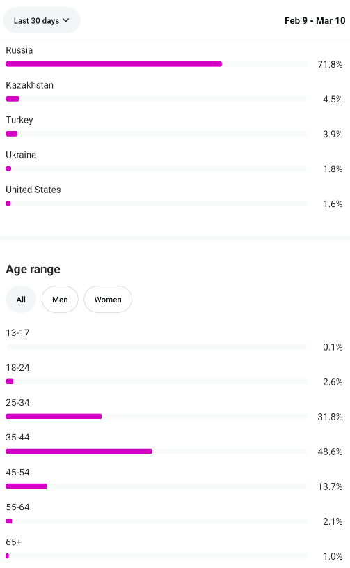 Country of followers (majority): Russia