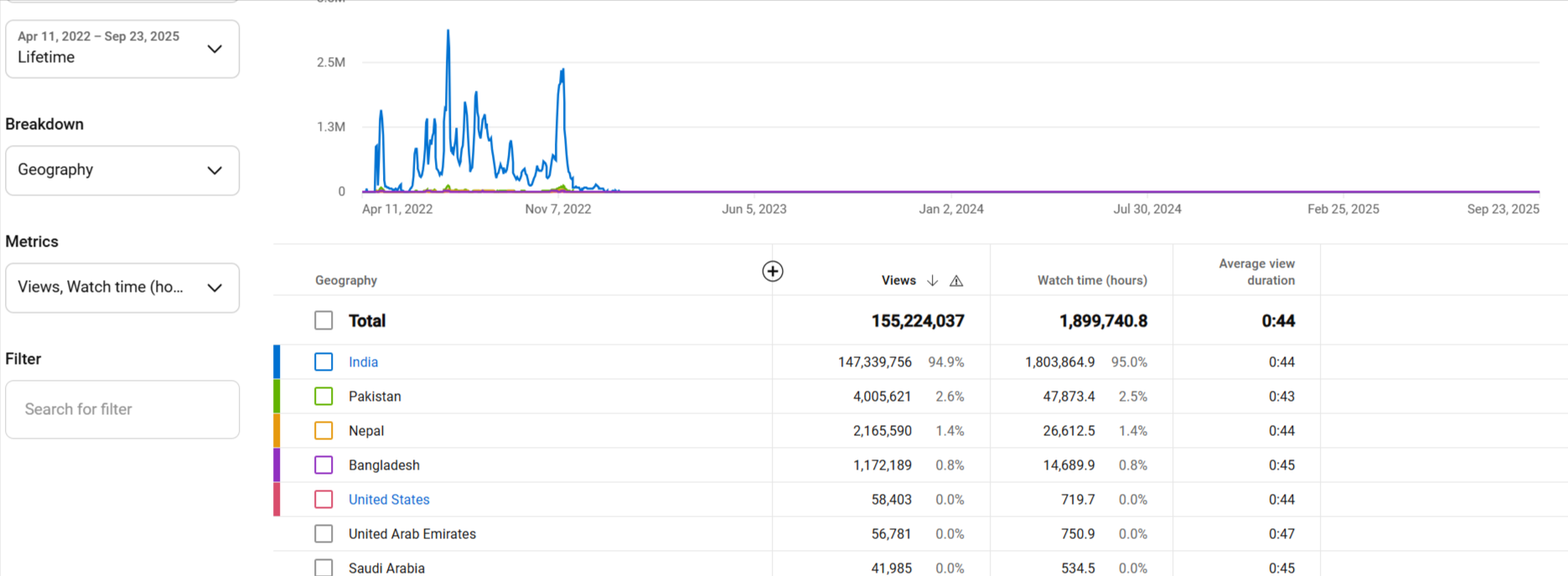 Country of subscribers (majority): India, Pakistan, Nepal, US