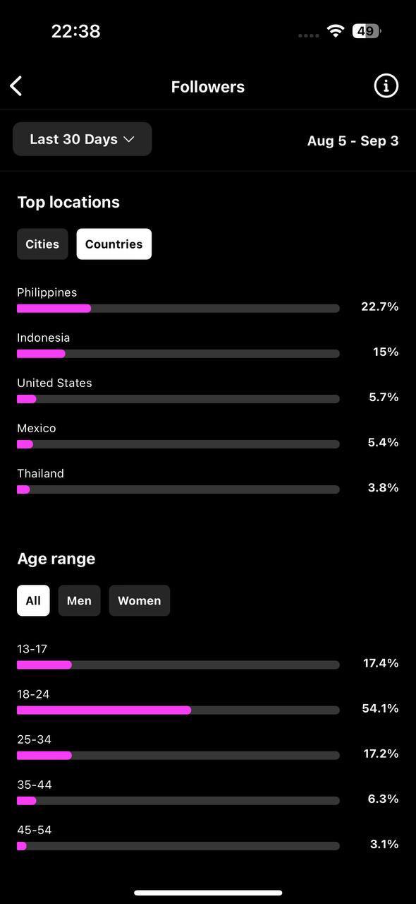 Country of followers (majority): philippines