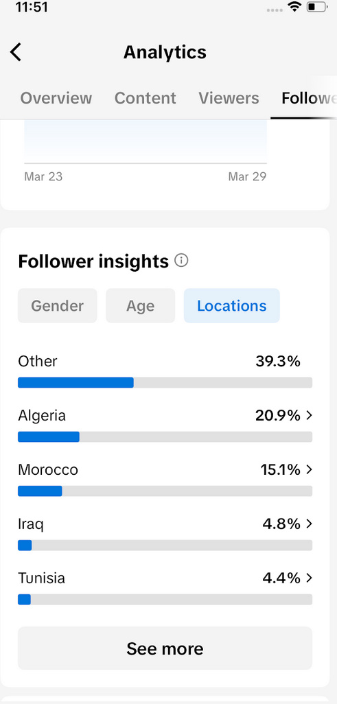 Country of followers (majority): Algeria Amount of fans/followers: 20800 Topic/Niche: Health Promotion methods used? (Organic/S4S/Follow Unfollow/Engagement Networks): Organic
