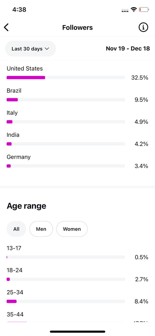 Country of followers (majority): United States