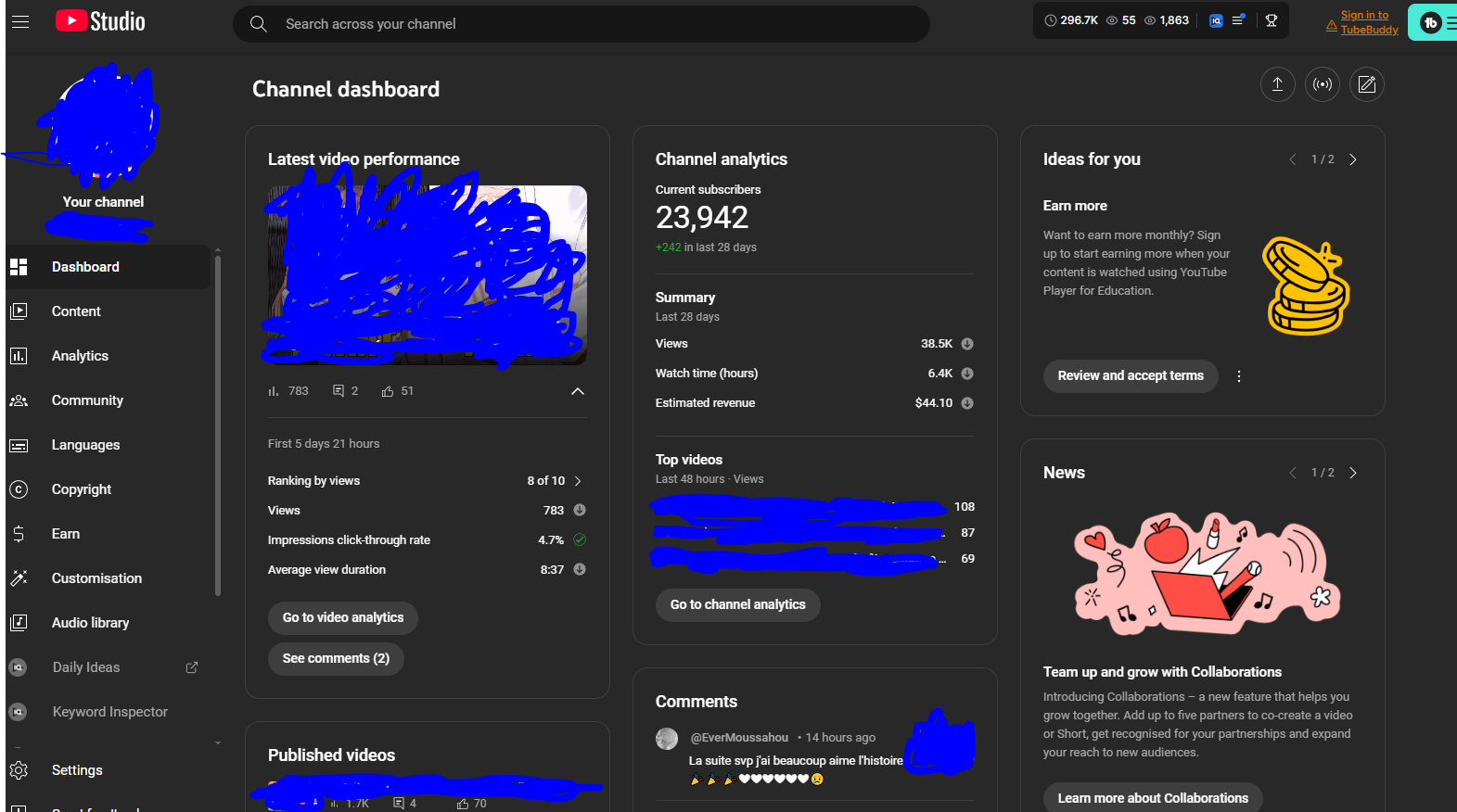 YouTube Channel for Sale: Organic | 23K+ Subs | France Top Audience | No Strikes