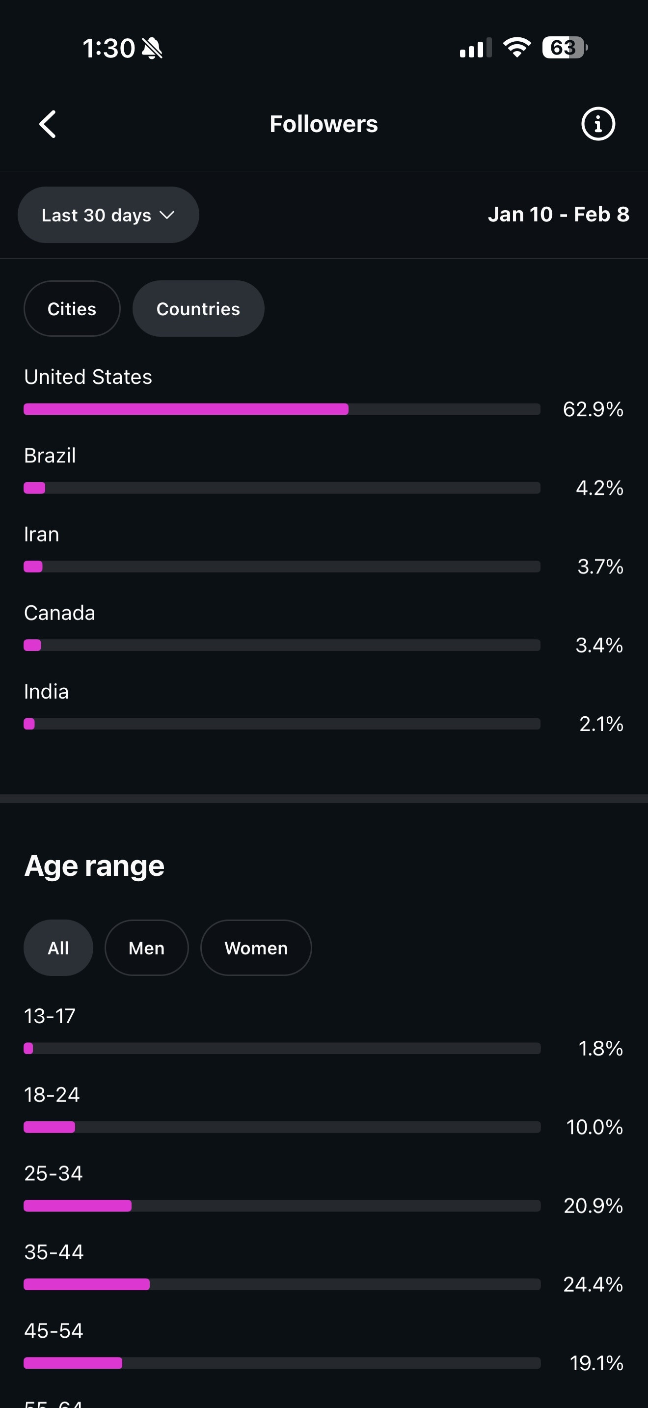 Country of followers (majority): USA