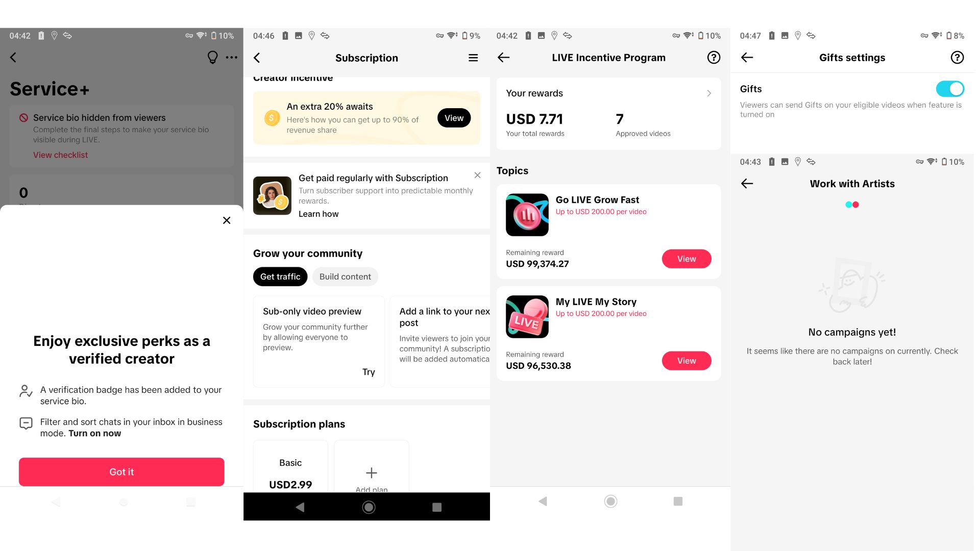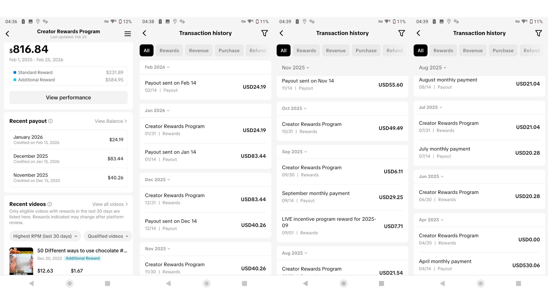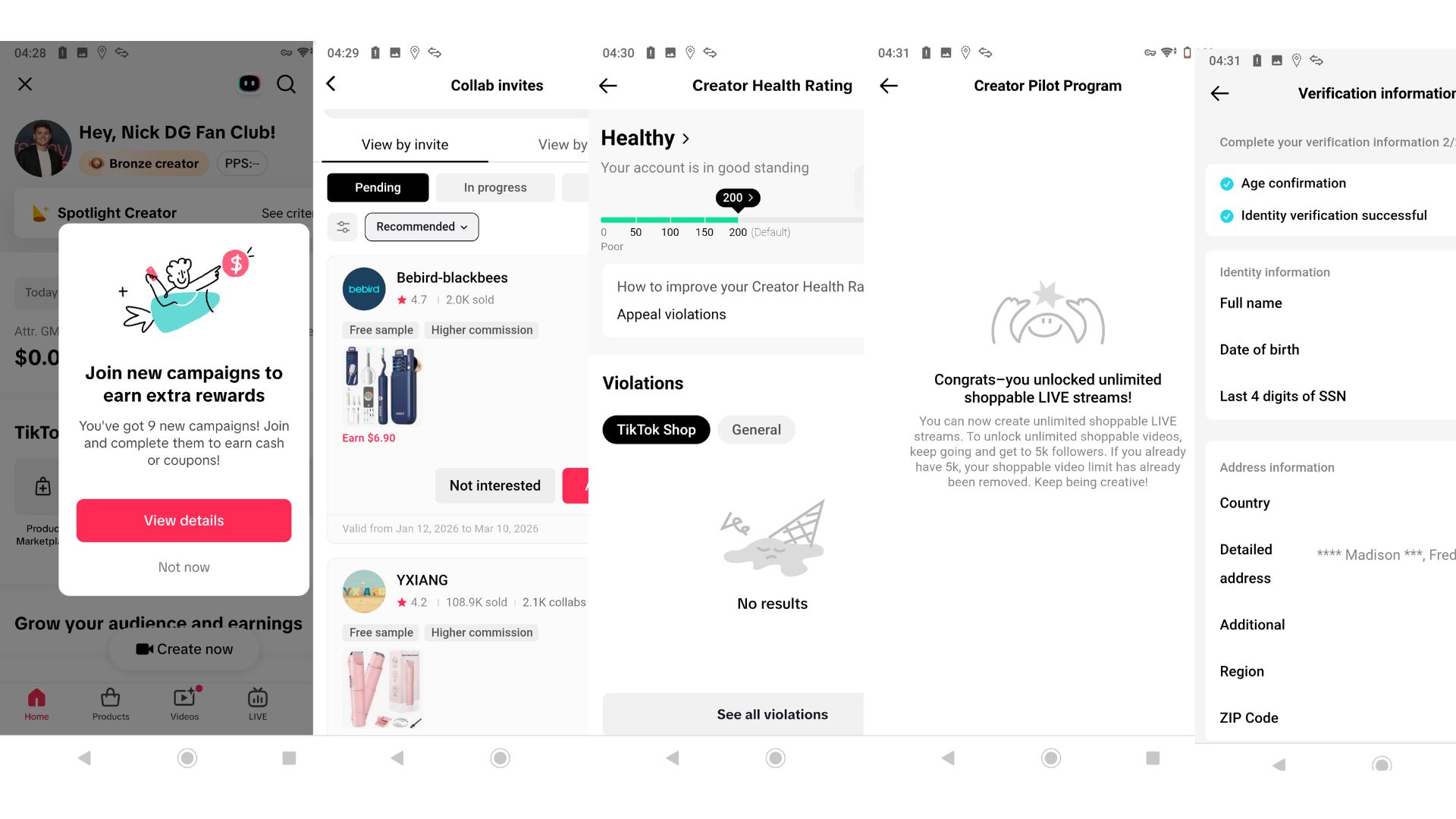 USA region TikTok account in the Food niche with active TikTok Shop and key monetization features enabled; Creator Rewards Program currently not active.