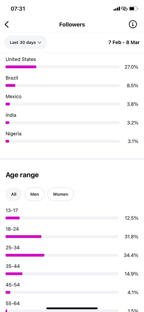 Country of followers (majority): United States