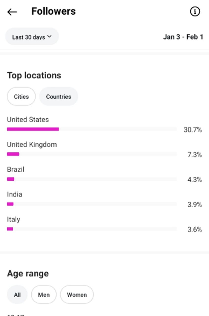 Country of followers (majority): 30% USA