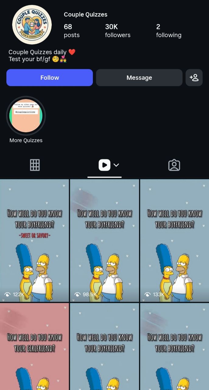Topic/Niche: Couple Quizzes
