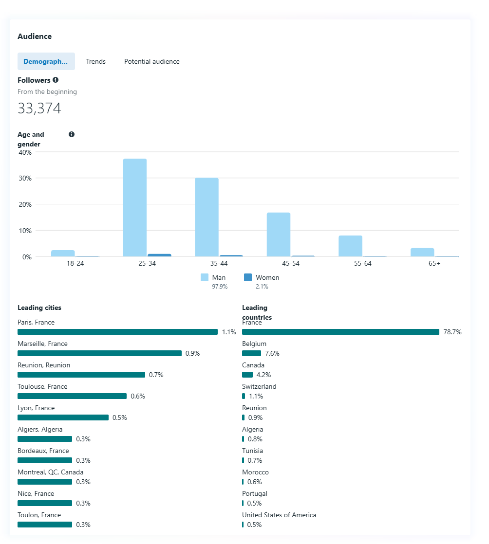 Country of followers (majority): France Amount of followers: 33k Topic/Niche: Modeling Promotion methods used? (Organic/S4S/Follow Unfollow/Engagement Networks): Organic