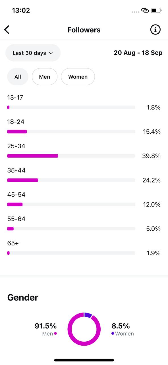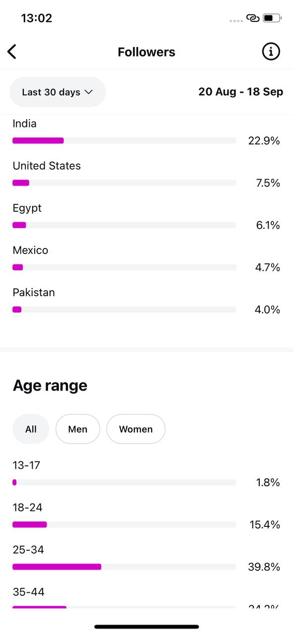Country of followers (majority): International