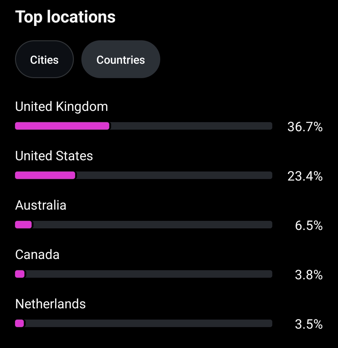 Country of followers (majority): UK, USA, AUS