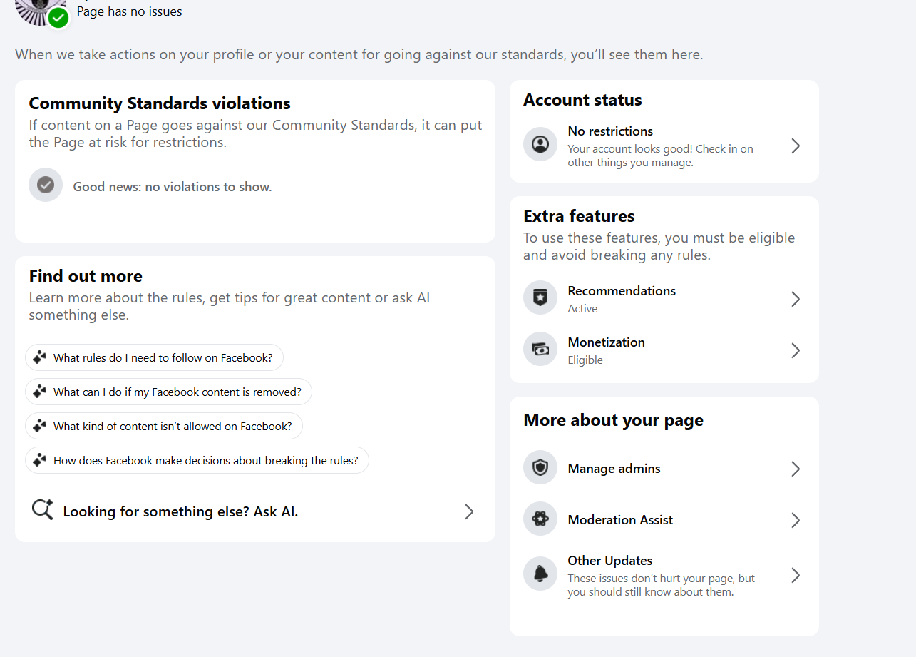 It has no violations, strikes or any issues.