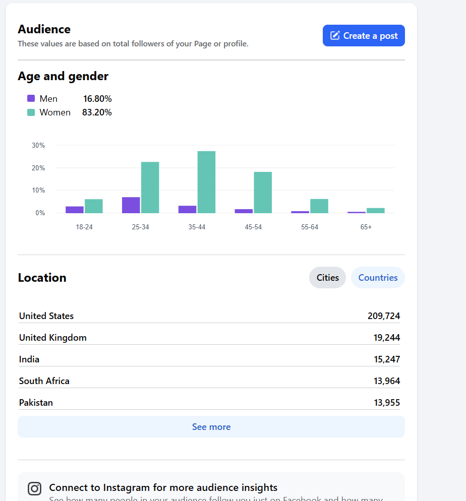 Country of followers (majority): United States - 209,724