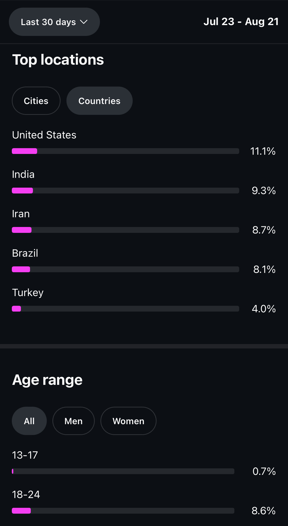 Country of followers (majority): United States