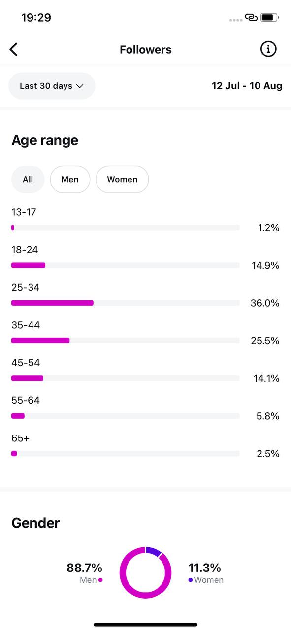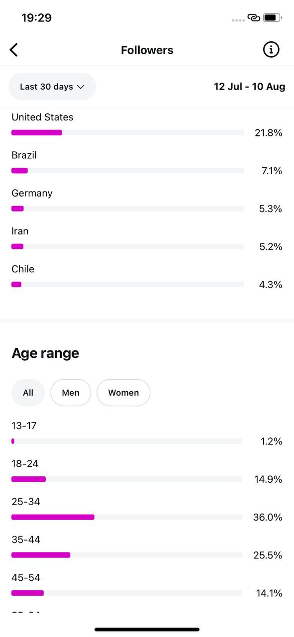 Country of followers (majority): United States