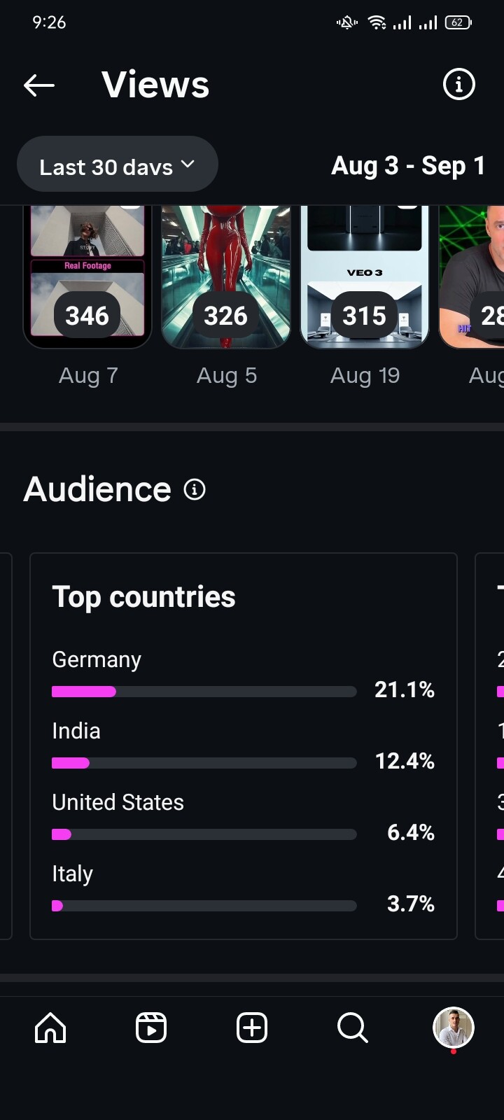 Country of followers (majority): Germany, India, US, Italy