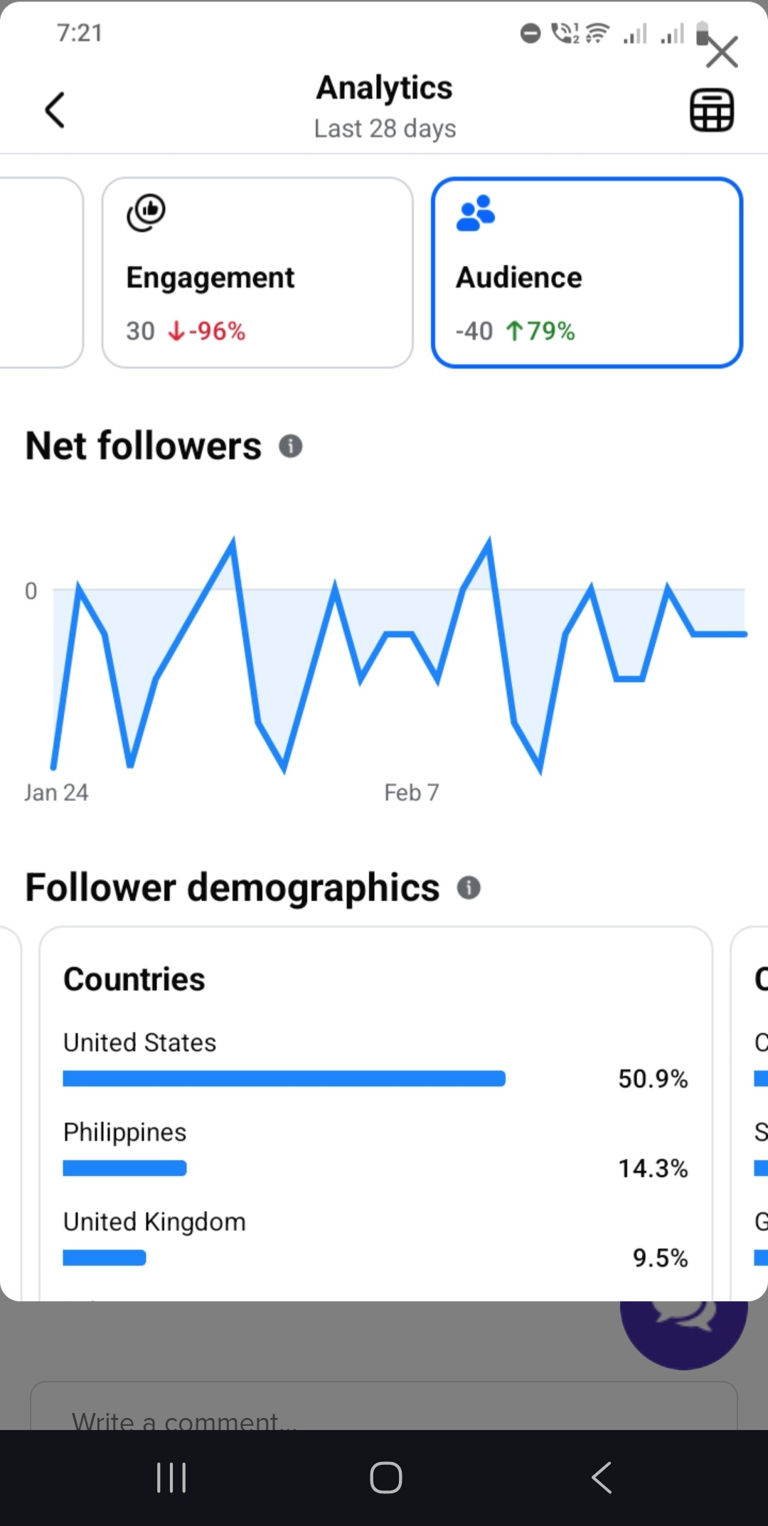 Country of followers (majority): United States