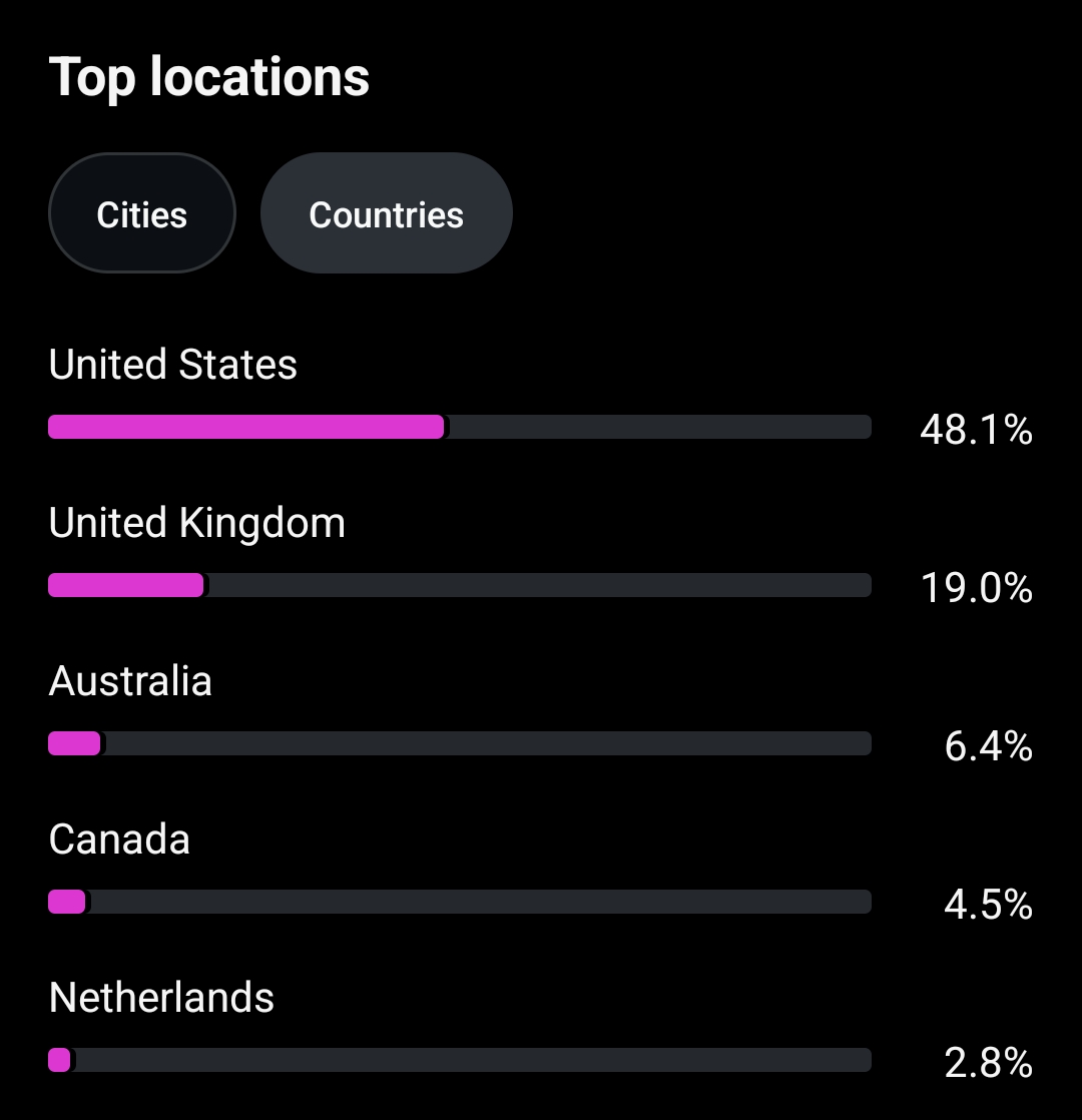 Country of followers (majority): USA, UK, AUS