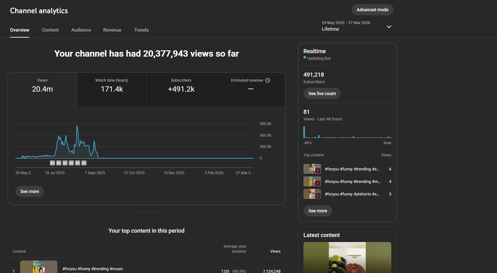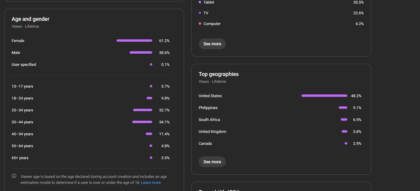 1- Channel have got 490k Subs in total. USA/UK 50%+.
