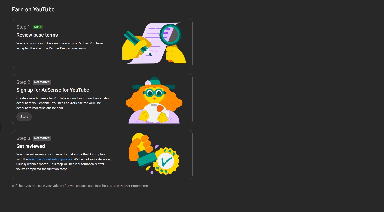 3- Non monetized, eligible channel. No warning, no strike.