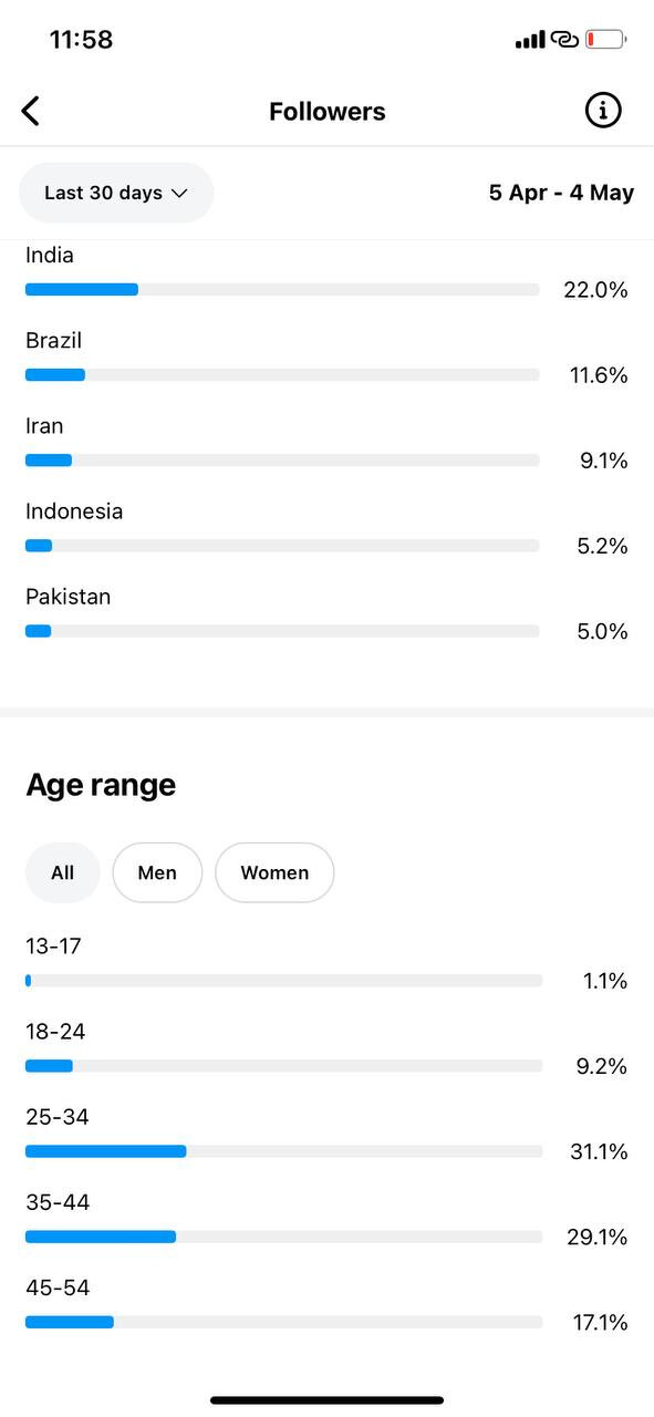 Country of followers (majority): International