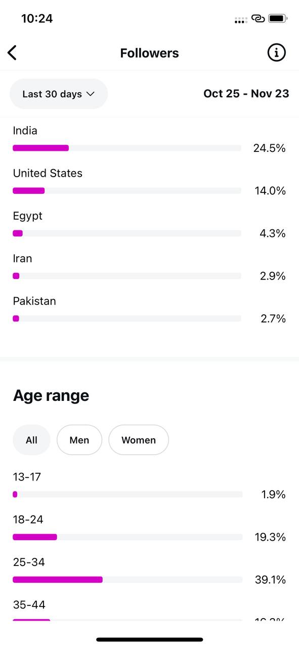 Country of followers (majority): International