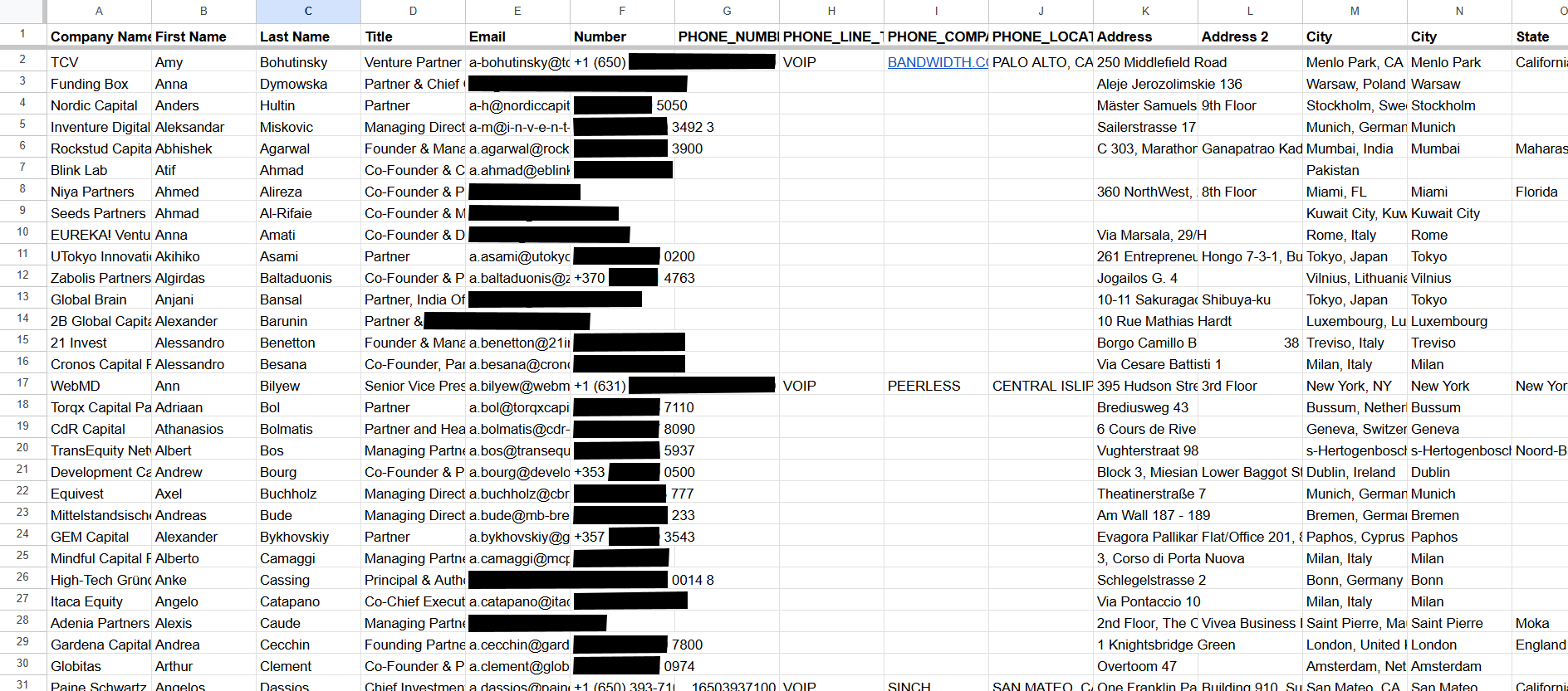 Includes both firm-level and contact-level information, with many senior titles across the private equity ecosystem.